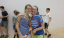 With such large groups and only 2 courts, three-quarters is the game to play. John Walsh.
